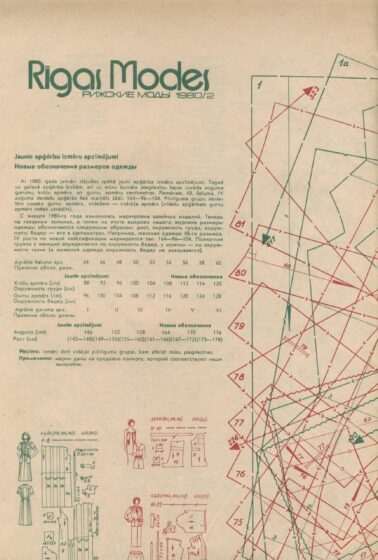 Later, the magazine was handed over to the Riga Fashion House – it was the heyday of “Rīgas Modes”. It appeared four times a year until 1992, in Latvian and in Russian. The circulation was quite impressive, with a whopping 220,000 copies – but it did not cover the needs of the entire Soviet Union. Each issue was handed down from hand to hand and was read down to holes. Pattern sheets were valued the most: their folds, torn and worn due to frequent use, were glued off and secured with slips of tracing paper.
