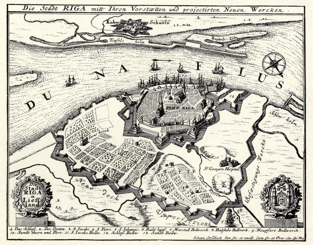 Plan of Riga, 1638. Copperplate by M. Merian.